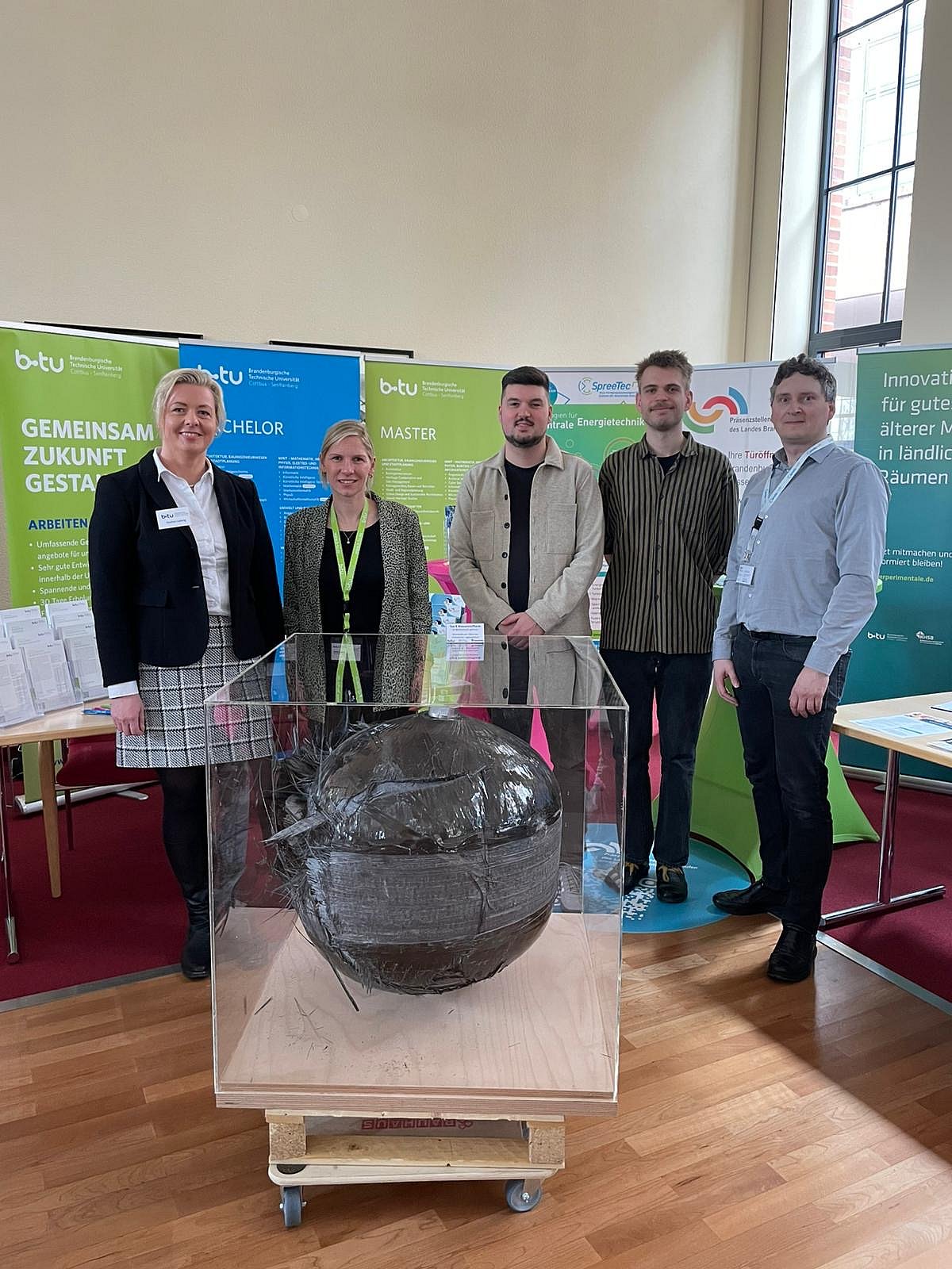 Durch diese Zusammenarbeit konnten wir Besucherinnen und Besuchern einen umfassenden Einblick in die vielfältigen Angebote der BTU geben. Themen waren unter anderem Studienmöglichkeiten an der Universität, berufliche Perspektiven und Einstiegsmöglichkeiten, aktuelle Forschungsaktivitäten sowie Transfer- und Beteiligungsformate für die Region.
