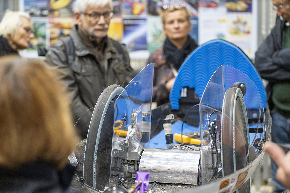 Auch bei Lausitz Dynamics gab es viele spannende Einblicke hinter die Kulissen: Von der Konstruktion des Fahrzeugs über die Herausforderungen im Wettbewerb bis hin zu Zukunftsplänen für neue Antriebe – die Teilnehmenden konnten zahlreiche Fragen stellen und mit den engagierten Studierenden ins Gespräch kommen.